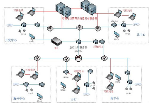 與原有的系統(tǒng)兼容,保持原有的撥號(hào)規(guī)則,會(huì)議系統(tǒng)等,盡量少的改變?cè)邢到y(tǒng),實(shí)現(xiàn)總行與四大中心以及各個(gè)分行的可視化通信,并實(shí)現(xiàn)可視化的通訊錄、會(huì)議管理、消息通知等一系列增值業(yè)務(wù)功能。