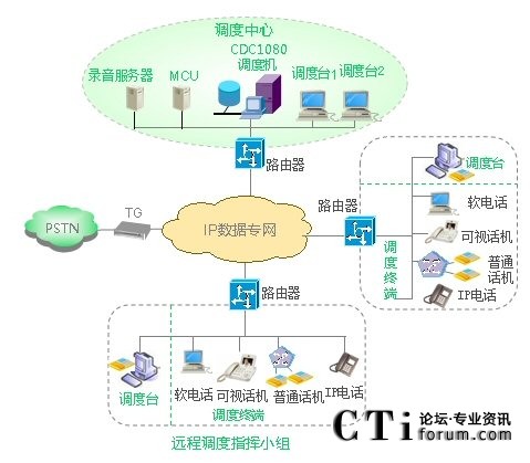 本系統(tǒng)為全IP的開放式體系架構,由IP調度機、調度臺和調度終端三部分構成。