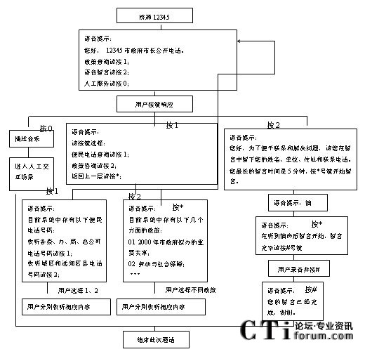 CTI論壇(ctiforum)07月10日消息: 12345政府熱線,是一個建立在開放的系統(tǒng)平臺之上,采用全中文、圖形化交互式的操作界面,提供開放的接口,能與其他信息、服務(wù)系統(tǒng)連接的系統(tǒng),該系統(tǒng)的設(shè)計(jì)開發(fā)具有先進(jìn)性、安全可靠性、可擴(kuò)充性、易用性、友好性等特點(diǎn)。通過政府12345熱線的工作人員在信息系統(tǒng)的平臺上以7X24小時方式運(yùn)行工作。在該系統(tǒng)工程的設(shè)計(jì)上還要充分考慮項(xiàng)目實(shí)施后可能發(fā)生的突發(fā)性規(guī)模放大量,為未來的發(fā)展趨勢,預(yù)留足夠擴(kuò)容空間,并考慮到由此可能造成的對系統(tǒng)架構(gòu)、技術(shù)實(shí)施方案、資源配置等所進(jìn)行的相應(yīng)改動,及如何提供開發(fā)工具去滿足不同時期的需要。