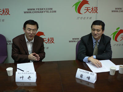 主持人:剖析行業(yè)發(fā)展趨勢,體察企業(yè)e化需求,各位網(wǎng)友下午好,感謝大家關(guān)注本期的e領(lǐng)袖對話。自2002年開始,CRM在中國取得了快速的發(fā)展,但在人們欣慰的同時還有一個現(xiàn)實讓CRM的概念可能人盡皆知,但CRM的理念卻遠沒有深入人心。另外,最近一頓時間,在領(lǐng)域內(nèi)舉足輕重人物的言行以及一些知名CRM企業(yè)的變數(shù),讓人們對CRM的未來有了各種各樣的猜測和顧慮。那么CRM到底會有一個什么樣的未來,CRM為會帶給中國的企業(yè)用戶一個什么樣的未來,今天我們對話請到的是在CRM領(lǐng)域相當資深的兩位嘉賓,看看他們會給我們一個什么樣的答案。今天這個話題引起了網(wǎng)友濃厚的興趣,在進來之前很多網(wǎng)友已經(jīng)提出了問題,今天會把網(wǎng)友的問題結(jié)合我們話題一起進行,請大家隨時關(guān)注,首先介紹一下今天來到對話的兩位嘉賓。一位是TurboCRMCEO薛峰。這位是獨立咨詢實施顧問葉開老師。首先歡迎兩位到來,今天話題可能跟之前不同,之前會了我們話題,隨后結(jié)合我們網(wǎng)友問題來聊。但是今天網(wǎng)友的問題和今天的主題比較切合,所以就網(wǎng)友問題和我們話題結(jié)合起來進行,今天把首發(fā)交給網(wǎng)友,Turbo算是國內(nèi)最大的嗎?先請葉老師回答一下。