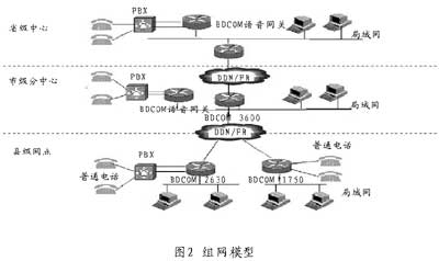 博達(dá)通信金融行業(yè)VoIP解決方案的組網(wǎng)模型是一個(gè)具有三級(jí)分支機(jī)構(gòu)的樹(shù)形網(wǎng)絡(luò),網(wǎng)絡(luò)結(jié)構(gòu)簡(jiǎn)單如圖2所示。