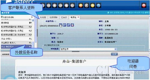 獲取的客戶數(shù)據(jù)便出現(xiàn)在客戶聯(lián)系人資料中,雙擊任一數(shù)據(jù)便可獲取相應(yīng)的客戶具體資料,如所屬的集團公司,所在城市,電話號碼等,是坐席對客戶資料瞬間掌握方便外呼服務(wù)。