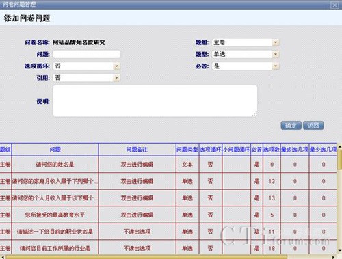 在后臺能夠?qū)柧磉M行添加或刪除,對問卷的設(shè)計、表現(xiàn)形式、問題類型等進行編輯修改。