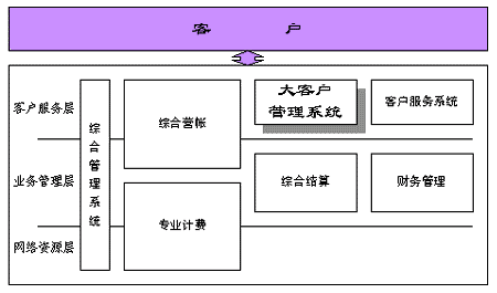 綜合電信業(yè)務服務支撐系統(tǒng)由專業(yè)計費、綜合營帳、綜合客服、綜合結算和統(tǒng)一客戶資料等系統(tǒng)組成。其中的大客戶服務系統(tǒng)是電信運營商面向大客戶提供服務的接口,通過大客戶市場開拓、大客戶信息收集及管理、大客戶服務及營銷、企業(yè)決策支持等一系列的活動,實現(xiàn)方便、快捷、高品質(zhì)的大客戶服務。
