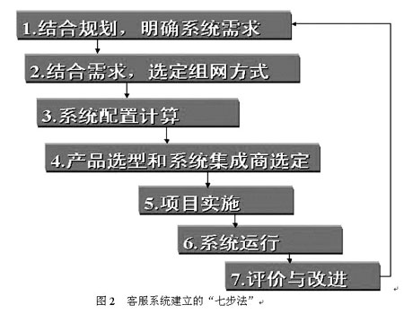 在規(guī)劃了呼叫中心戰(zhàn)略、客服組織架構(gòu)、客服流程與客服績效考評之后,呼叫中心系統(tǒng)的建設(shè)就有了戰(zhàn)略層面的規(guī)劃和運營管理層面的指導(dǎo),而對戰(zhàn)略管理和運營管理方面的支持則有賴于客服系統(tǒng)的建立。在戰(zhàn)略管理和運營管理指導(dǎo)下的客服系統(tǒng)如何具體建立呢?下面分七個步驟來分別說明: