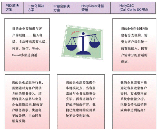 HollyC6支持的業(yè)務類型包括:客戶服務中心、咨詢熱線、電子商務中心、服務受理中心、預訂中心、電話營銷中心、技術支持中心等。