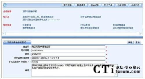 要實現(xiàn)此目的,IT支撐系統(tǒng)將高技能座席的處理能力“推送”給普通座席。第一章我們論述了IT支撐系統(tǒng)可以以客戶應(yīng)用場景為核心,通過分析流程分析客戶訴求找到客戶真正的需求?梢詫⑦@一思路推演下去,針對客戶的某個具體需求,呼叫中心制定統(tǒng)一的解決方案。我們以下面的“預(yù)存話費換手機”為案例。通過先期溝通,座席已經(jīng)知曉這是客戶的真正訴求,只需要選擇好“預(yù)存話費換手機”的業(yè)務(wù)類型,IT支撐系統(tǒng)會顯示出集成在一個頁面中的全套解決方案:處理此訴求可能用到知識庫中的三個知識點;需要查詢的客戶信息,經(jīng)常給客戶發(fā)送的短信內(nèi)容;處理此訴求可能執(zhí)行的登記任務(wù),……