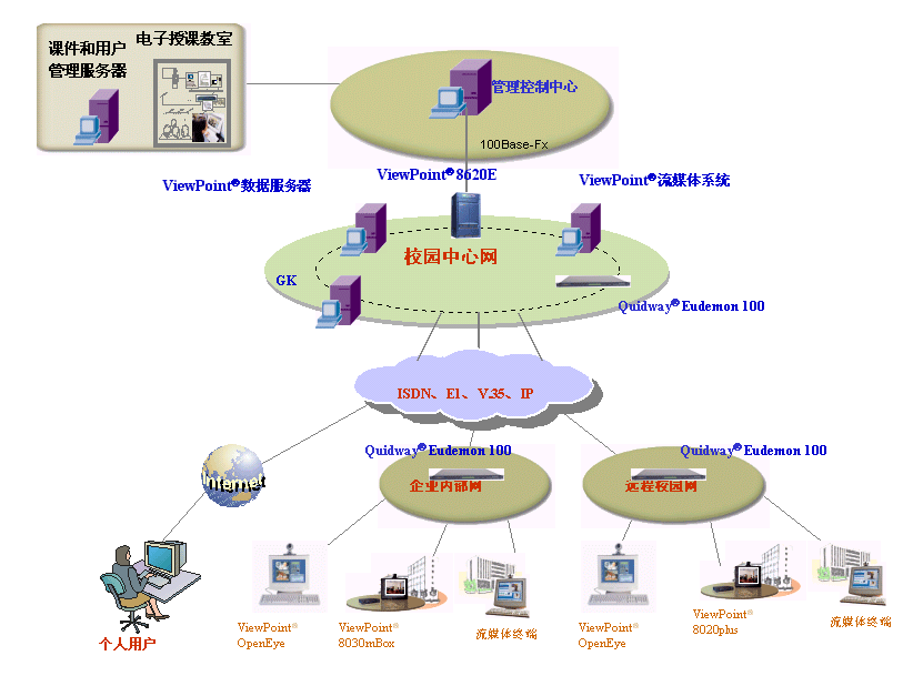 對于專網(wǎng)或非面向運行的視訊網(wǎng)絡建設(shè),“視點通”ViewPoint®8000綜合視訊系統(tǒng)可以提供寬窄帶一體化的視訊交換平臺,提供各種線路接口方式,可充分利用專網(wǎng)和企業(yè)的現(xiàn)有網(wǎng)絡,同時考慮網(wǎng)絡的發(fā)展需要,支持擴展其它接口,保護用戶投資。