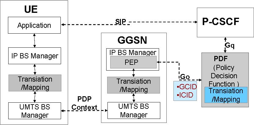 。3)PDF對IP流進行記錄(包括流標(biāo)識符(GCID)、數(shù)據(jù)速率、QoS類別等)并授權(quán)。通過SDP參數(shù)映射到所授權(quán)的IPQoS參數(shù)而實現(xiàn),并通過GO接口(COPS協(xié)議)傳送到GGSN。