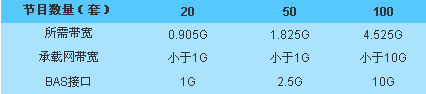 承載網(wǎng)帶寬需求=BTV帶寬(每頻道帶寬×套數(shù))+VOD帶寬(用戶數(shù)×在線率×點(diǎn)播率×每影片點(diǎn)播占用帶寬)+普通上網(wǎng)帶寬(用戶數(shù)×在線率×上網(wǎng)比例×平均上網(wǎng)流量)