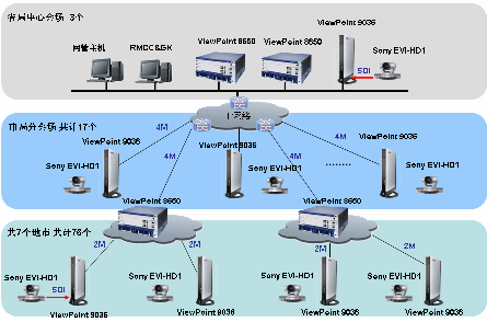 省到17個(gè)地市的二級網(wǎng)采用: ViewPoint 8650 高清MCU 2臺,用于媒體交換和信令交互。Viewpoint