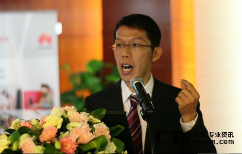 圖:華為軟件UC產(chǎn)品總監(jiān)許國華做“攜手邁入全業(yè)務(wù)融合時(shí)代,助力企業(yè)騰飛”的主題演講
