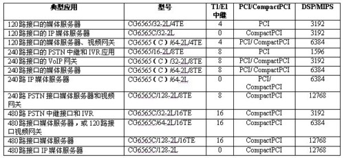 CG 6565系列產(chǎn)品體系設計在單塊板卡上集成了PSTN接口、電信協(xié)議、全面的IVR功能、全雙工回音消除、語音編碼、傳真處理、會議應用、視頻處理、快速以太接口和數(shù)據(jù)包協(xié)議。這種集成產(chǎn)生了經(jīng)濟型、可擴展的系統(tǒng)平臺,可以滿足OEM供應商對120路接口以上新一代融合應用解決方案的研制需求。