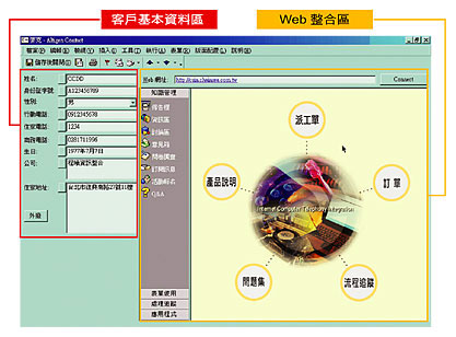 AltiGen可整合Web機(jī)制,Web為全世界Internet的標(biāo)準(zhǔn)介面,更是整合全球資源達(dá)無遠(yuǎn)弗屆境界的功臣,同時(shí)企業(yè)主可在其上輕易開發(fā)或整合其他程式,更可整合Web跑單 (Work Flow)、訂單等功能,使用者可一邊與客戶通話,一邊在電腦螢?zāi)簧舷掠唵位蚍峙晒ぷ鳎?jié)省人工跑單作業(yè)時(shí)間,提升作業(yè)效率,同時(shí)對于跑單狀況的追蹤管理皆可在統(tǒng)一介面獲得整合,任何更新的進(jìn)度都可第一時(shí)間掌握。