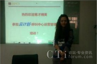 2012年3月16日作為“云計(jì)劃”第一期培訓(xùn)班在北京正式啟動(dòng),獲得了就職于各呼叫中心項(xiàng)目的易才博普奧一線坐席員工的廣泛關(guān)注和踴躍的報(bào)名。經(jīng)過(guò)“云計(jì)劃”入門培訓(xùn)資格的嚴(yán)格篩選,最終共有來(lái)自藝龍、樂(lè)淘、用友等項(xiàng)目的9名優(yōu)秀員工正式入圍,成為第一期“云計(jì)劃”成員。在今后的一段時(shí)間里同易才博普奧資深培訓(xùn)師一起學(xué)習(xí)一些列的專業(yè)課程,豐富自身在呼叫中心行業(yè)的專業(yè)知識(shí),并走上易才博普奧構(gòu)建的職業(yè)晉升通道!