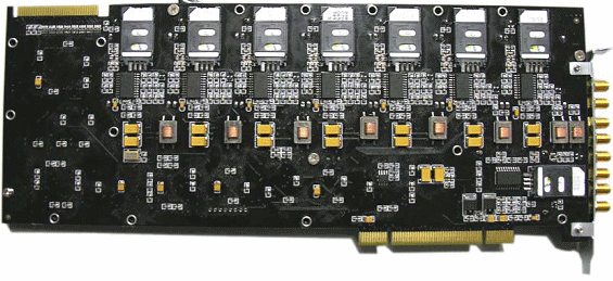 板卡側面引出4或8個天線接口。使用時,將天線延長線與之擰上固定。
