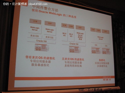 而甲骨文是關(guān)注公有云還是私有云呢?就如甲骨文“更多的企業(yè)最終將混合采用公有云和私有云”那樣,甲骨文的云計(jì)算策略是既支持公有云又支持私有云使客戶(hù)有選擇余地。不過(guò)喻思成也坦言,由于甲骨文關(guān)注企業(yè)市場(chǎng),可能更多的精力還是放在私有云的建設(shè)上。