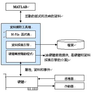 數(shù)據(jù)采集工具箱是一組M-File 函式集和MEX-File 等動(dòng)態(tài)鏈接鏈接庫所組成的, 專門使用在數(shù)據(jù)采集方面的一組函式庫.