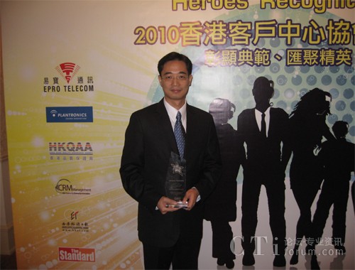 圖:唐金良獲最佳呼入客戶中心組長的銅獎
