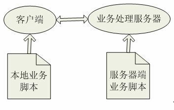 整個(gè)業(yè)務(wù)數(shù)據(jù)和業(yè)務(wù)處理都由XML配置管理,系統(tǒng)業(yè)務(wù)被分成本地業(yè)務(wù)邏輯和服務(wù)器端業(yè)務(wù)邏輯,客戶端通過提取本地業(yè)務(wù)邏輯腳本中的數(shù)據(jù)處理業(yè)務(wù)邏輯,業(yè)務(wù)處理服務(wù)器通過提取服務(wù)器端業(yè)務(wù)邏輯腳本中的數(shù)據(jù)訪問數(shù)據(jù)庫,并將數(shù)據(jù)庫返回結(jié)果發(fā)往客戶端。本地業(yè)務(wù)邏輯和服務(wù)器端業(yè)務(wù)邏輯之間的邏輯關(guān)系是通過一套配置腳本維護(hù)。如圖: