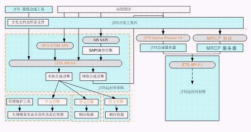 Programming Interface),即jTTS API 4.0,以及統(tǒng)一的多語種引擎管理模塊,即jTTS_ML.DLL。多語種的引擎(例如中文引擎jTTS_CH.DLL,英文引擎jTTS_EN.DLL等)在多語種引擎管理模塊的調(diào)度下進(jìn)行實(shí)際的合成工作,而目前尚未提供的其他語種的引擎也可以方便地加入到這個(gè)體系結(jié)構(gòu)中來。