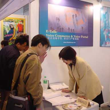 4月4日至7日,第五屆世界計(jì)算機(jī)博覽會(huì)(COMDEX/China2001)暨第二十二屆中國計(jì)算機(jī)產(chǎn)品北京展覽交易會(huì)在京舉辦,來自國內(nèi)外的眾多IT軟硬件廠商參加了該展會(huì)。本次展會(huì)中,語音技術(shù)的備受矚目成為本屆COMDEX展的亮點(diǎn),北京金言豐語音技術(shù)有限公司的語音門戶VOICE PORTAL 及利用語音方便快捷查詢股票行情、點(diǎn)歌等實(shí)用信息系統(tǒng)的現(xiàn)場(chǎng)演示吸引眾多與會(huì)者停下腳步,“沒想到無須經(jīng)過繁復(fù)訓(xùn)練,電腦也能高準(zhǔn)確率地識(shí)別我說的句子!币晃挥H身感受了語音識(shí)別技術(shù)魅力的參觀者如是說。
