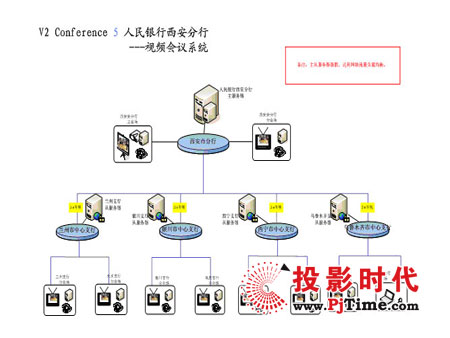 圖例:V2 Conference應(yīng)用于人民銀行西安分行拓撲圖
