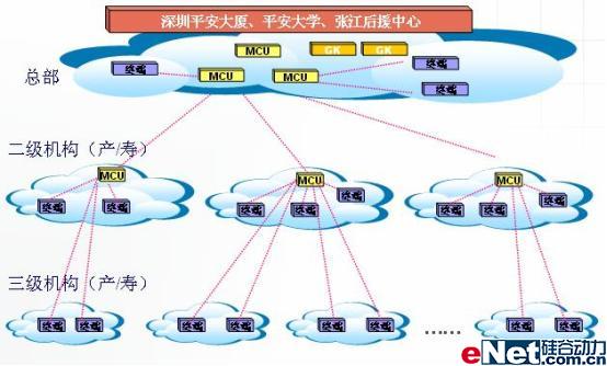 平安保險公司的視頻會議系統(tǒng)覆蓋公司產險、壽險、信托、銀行等各分支公司。從99年起,平安保險的視頻會議系統(tǒng)建設就未曾停滯過,至今年7月,已經在產險和壽險兩大公司內覆蓋至全國各地的三級機構,其他分公司也已經覆蓋至全過二級機構。公司全部使用POLYCOM視頻會議系統(tǒng)構架其主要會議室,終端總數已超過四百臺,多點會議服務器(MCU)四十余臺,分布全國各地以及平安保險公司全球的各樞紐公司。預計至今年年底,平安保險的POLYCOM視頻會議系統(tǒng)將成為國內最大的企業(yè)級視頻會議應用系統(tǒng)。