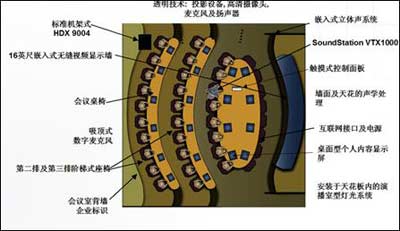 設(shè)計(jì)的獨(dú)具匠心之處還在于投影設(shè)備和攝像頭采用了分離的隱密安裝方式,因而所有與會者都完全呈現(xiàn)在屏幕上,不受任何限制地與各方交流。另外,由于采用整體環(huán)境設(shè)計(jì),從地面到天花板均采用預(yù)制結(jié)構(gòu)和現(xiàn)場安裝,絕大多數(shù)情況下,系統(tǒng)安裝不需要特別的許可證,同時會議室的全部設(shè)施也可以隨企業(yè)遷址而重新安裝。