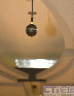 至關(guān)重要的麥克風(fēng)并沒(méi)有放在桌子上,而是像小行星一樣巧妙地懸掛于天花,徹底改變了人們對(duì)著麥克風(fēng)發(fā)言的習(xí)慣,讓溝通更趨向于真實(shí)會(huì)議環(huán)境;可別小看這“高高在上”的麥克風(fēng),它的360度全向立體聲拾音能力,震撼了我們?cè)谧拿恳粋(gè)人,寬帶音頻技術(shù)已經(jīng)到了如斯的地步。