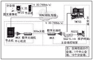 本會(huì)議電視系統(tǒng)的網(wǎng)絡(luò)接口全部采用了成本較低的V.35接口,并利用節(jié)省下的投資,為用戶購(gòu)置了圖文攝像機(jī),方便了用戶召開(kāi)技術(shù)培訓(xùn)和案例分析會(huì)議。