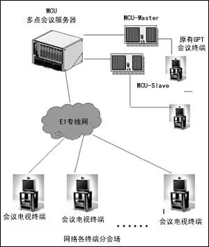 對用戶來說,本方案優(yōu)勢在于:保持原有網(wǎng)絡(luò)結(jié)構(gòu)不變,充分利用原有系統(tǒng)設(shè)備(包括MCU和終端);保持政府會(huì)議繼續(xù)采用專線網(wǎng)絡(luò),安全性、穩(wěn)定性高;使用E1/2M傳輸專線,保證會(huì)議的圖像和聲音質(zhì)量;該系統(tǒng)同時(shí)支持H.320/H.321/H.323協(xié)議,即可同時(shí)采用E1專線,ISDN撥號,IP網(wǎng)、ATM網(wǎng)等方式開會(huì),將來能夠靈活、平滑擴(kuò)展到各種系統(tǒng)中去,最大地保護(hù)了用戶的投資和資源。