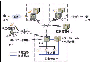 每個(gè)業(yè)務(wù)節(jié)點(diǎn)都由ISM(智能交換模塊)、CTI服務(wù)器、DB(數(shù)據(jù)庫(kù))、VRM(語(yǔ)音資源模塊)和座席等模塊構(gòu)成,下面逐一介紹各模塊的作用和功能。