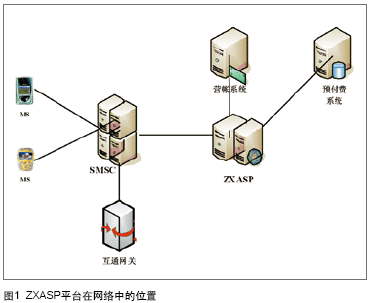 ZXASP:中興短消息增值業(yè)務(wù)平臺,是一個位于SMSC后端的增值業(yè)務(wù)邏輯控制處理網(wǎng)元,它為用戶提供新型短信增值業(yè)務(wù)開戶、銷戶以及業(yè)務(wù)使用流程控制支持等相關(guān)功能。核心網(wǎng)元ZXASP分別與短信中心、營帳系統(tǒng)以及預(yù)付費系統(tǒng)進(jìn)行連接,以實現(xiàn)對用戶簽約多種增值業(yè)務(wù)情況下的服務(wù)支持。如圖1。