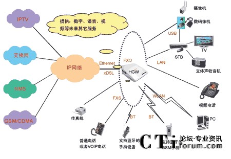 - 家庭網(wǎng)絡的外圍設備—STB、PC、可視電話、Bluetooth手機等;