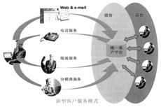 在以客戶服務(wù)中心為前臺(tái)的新型服務(wù)模式中,統(tǒng)一了客戶服務(wù)的平臺(tái)。客戶只需要和客戶服務(wù)中心打交道,所有的問題都可以通過客戶服務(wù)中心解決。用戶只需要打一次電話即可解決所有問題!同時(shí),客戶服務(wù)中心作為一個(gè)信息島,統(tǒng)一與企業(yè)內(nèi)部各個(gè)部門、資源進(jìn)行溝通,以方便解決用戶的所有問題。