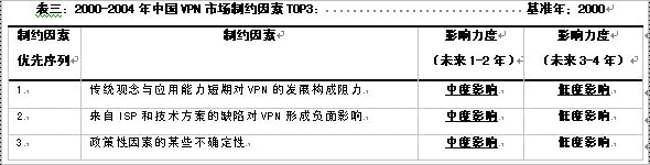 三、2000-2004年度,中國(guó)VPN市場(chǎng)發(fā)展的驅(qū)動(dòng)與制約因素