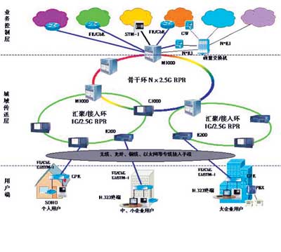 在城域網(wǎng)中,各種業(yè)務(wù)層的設(shè)備(如程控交換機、路由器、VoIP網(wǎng)關(guān)和關(guān)守等)放置于POP節(jié)點中,PacketWave提供E1、STM-1等TDM專線和各種速率的MPLS專線,并與接入層“最后1公里”的各種接入技術(shù)相結(jié)合,將業(yè)務(wù)控制層的各種服務(wù)通過上述各種專線延伸到用戶端。用戶端的CPE設(shè)備作為運營商和用戶間的UNI接口,根據(jù)需求向用戶提供從N×64K、E1到STM-1的各種TDM接口和各種以太網(wǎng)端口。