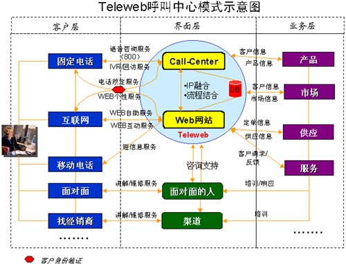 前進(jìn)中的CallCenter面臨的成本壓力問題、模式創(chuàng)新問題困擾著成長中的中國企業(yè),互聯(lián)網(wǎng)的蓬勃進(jìn)步為現(xiàn)代企業(yè)CallCenter的發(fā)展帶來新的機(jī)遇和挑戰(zhàn)。互聯(lián)網(wǎng)的優(yōu)勢和特點(diǎn)在于:媒介信息存儲量大,維護(hù)更新快,傳播范圍廣,獲取信息便捷;互動性強(qiáng),應(yīng)用手段豐富;成本低。這使得WEB服務(wù)與電話服務(wù)"雙劍合一",大大增強(qiáng)了呼叫中心的服務(wù)效率和質(zhì)量,成為一種新型的信息支持服務(wù)模式,我們不妨稱之為TeleWeb模式,是聯(lián)想集團(tuán)實踐服務(wù)戰(zhàn)略的有機(jī)組成部分和生動演繹。