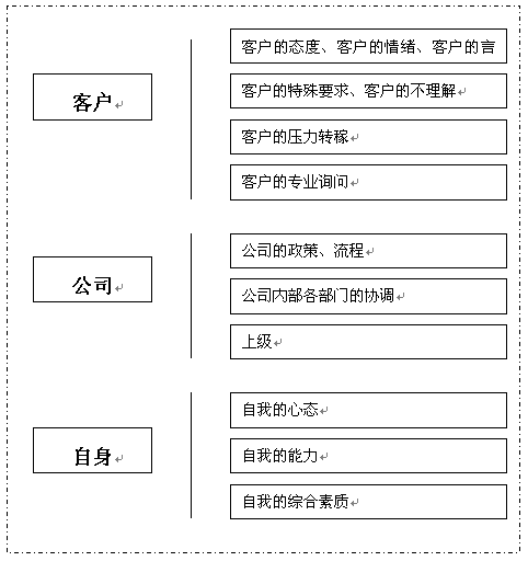 對于一個客戶服務中心來說,壓力主要來自三方面:客戶、公司、自身!