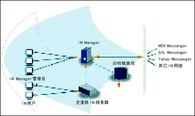 除了這些產(chǎn)業(yè)巨頭以外,巨大的IM管理市場(chǎng)也培育了許多專業(yè)的IM管理廠商。這些廠商的產(chǎn)品可以外掛至大公司的IM服務(wù)平臺(tái),從而為企業(yè)用戶提供IM管理解決方案。IMlogic就是這樣一家公司,它的IM Manager產(chǎn)品可以管理來(lái)自微軟、雅虎、IBM、AOL以及Jabber等等公司的IM平臺(tái)。