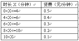 例3,國內長途話費在時長不超過4分鐘的情況下,按0.07元/6秒收取;超過4分鐘但不超過6分鐘,統(tǒng)一按0.06元/6秒收;超過6分鐘但不超過8分鐘,統(tǒng)一按0.05元/6秒收。怀^8分鐘但不超過10分鐘,統(tǒng)一按0.04元/6秒收;超過10分鐘,統(tǒng)一按0.03元/6秒收取。