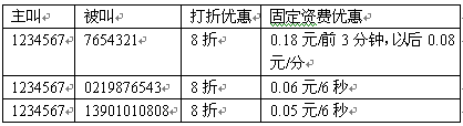 根據(jù)主叫用戶和被叫用戶之間的關系,對主叫用戶的通話費進行優(yōu)惠處理。例4,親情號碼優(yōu)惠。用戶申請該業(yè)務后,可指定若干被叫號碼,對該用戶呼叫這些號碼的話單費用打折或按固定優(yōu)惠資費進行處理。