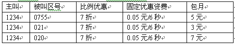 例5,可以對某個號碼或號段用戶呼叫深圳、上海、廣州方向的長話進行優(yōu)惠處理。