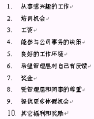 在對員工關(guān)心的十個指標(biāo)的調(diào)研、統(tǒng)計(jì)分析后發(fā)現(xiàn),在企業(yè)提供良好的培訓(xùn)體系前提下,人員的流失與企業(yè)提供的薪酬有必然的關(guān)系。各因素影響程度由高到低排序如下: