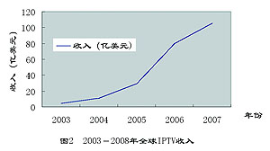 圖2 2003-2007年全球IPTV業(yè)務(wù)收入預測
