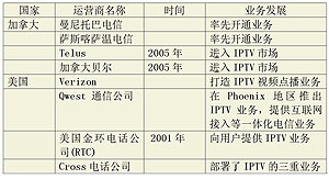 加拿大和美國IPTV運營商的經(jīng)營情況如表2和表5。