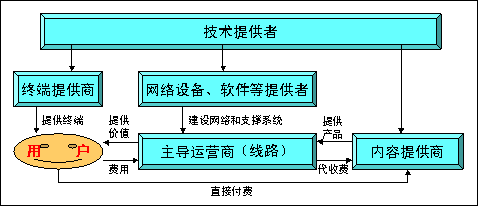 IPTV核心技術(shù)擁有者是整個(gè)系統(tǒng)的技術(shù)提供者,收取專(zhuān)利費(fèi)和使用費(fèi)等。