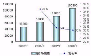 2006年1月?lián)Z盛發(fā)布的最新《2005-2006年移動(dòng)增值業(yè)務(wù)市場(chǎng)回顧與展望》報(bào)告數(shù)據(jù)顯示,2005年中國的移動(dòng)增值業(yè)務(wù)用戶規(guī)?倲(shù)達(dá)到了3億,市場(chǎng)規(guī)模達(dá)到近近4588億元。諾盛預(yù)計(jì),2006年移動(dòng)增值業(yè)務(wù)用戶規(guī)模將達(dá)到3.9億,市場(chǎng)規(guī)模為620億元;2007年在3G的刺激下,移動(dòng)增值業(yè)務(wù)用戶規(guī)模將達(dá)到5億,市場(chǎng)規(guī)模為810億元;2008年用戶規(guī)模將達(dá)到6億,市場(chǎng)規(guī)模為1053億。移動(dòng)增值業(yè)務(wù)用戶規(guī)模年增長率在20%以上,市場(chǎng)規(guī)模增長率在30%以上。