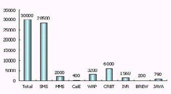 2005年,中國的移動(dòng)增值業(yè)務(wù)用戶規(guī)?倲(shù)達(dá)到了3億,其中短信用戶伴隨移動(dòng)通信用戶的穩(wěn)定增長而增長,MMS、CaiE、JAVA、BREW等數(shù)據(jù)業(yè)務(wù)隨著終端的普及以及產(chǎn)品的豐富,增長很快,以上四類數(shù)據(jù)增值業(yè)務(wù)累計(jì)用戶2005年已超過2500萬。